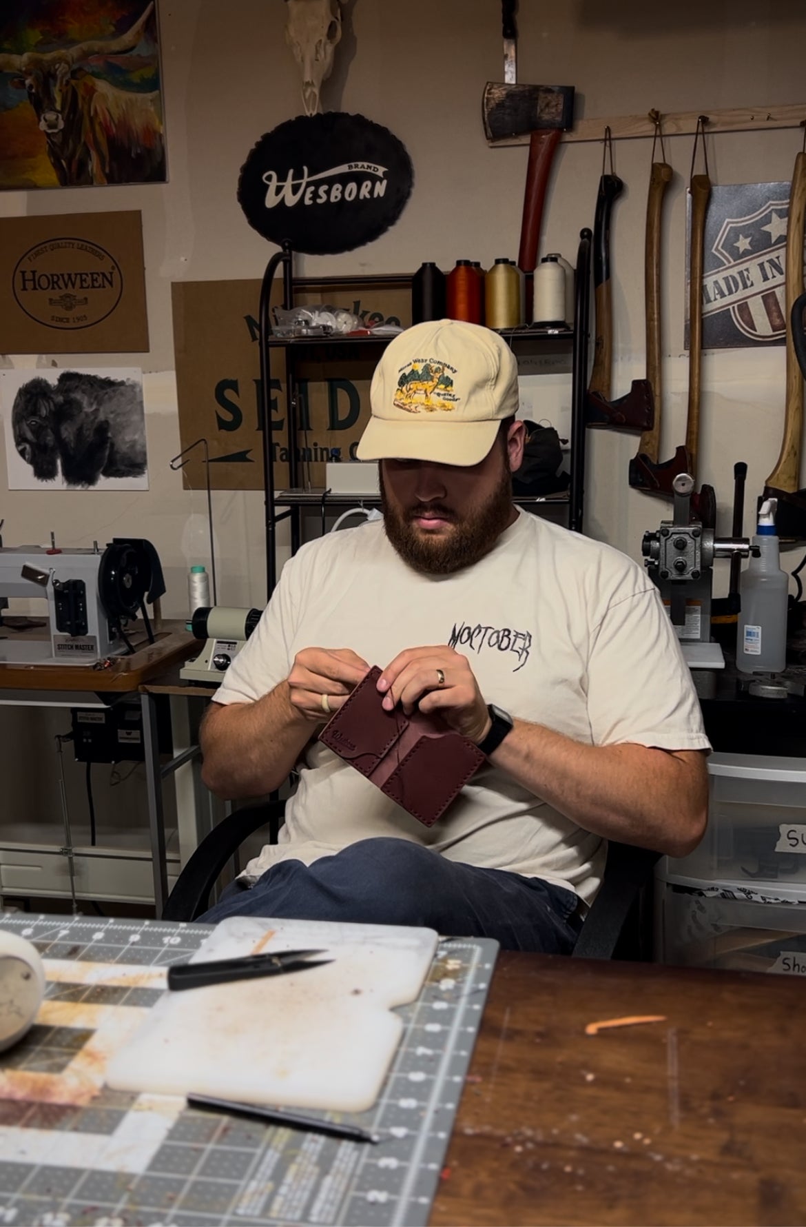 My name’s Taylor. I started Wesborn in the mountains of Utah with the goal of building leather goods that can be passed down. Each piece is designed and made here in my shop, with help and support from my loving family